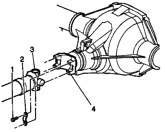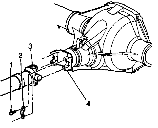 4. Reference mark the rear propeller shaft (3) to the rear axle pinion yoke (4).
