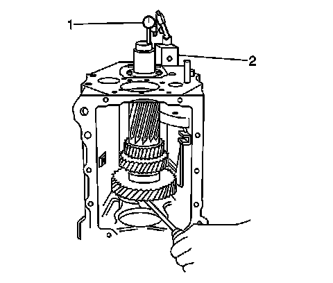 1. Using J 26900-13 (2), set the J 8001 (1) on the end of the countershaft.