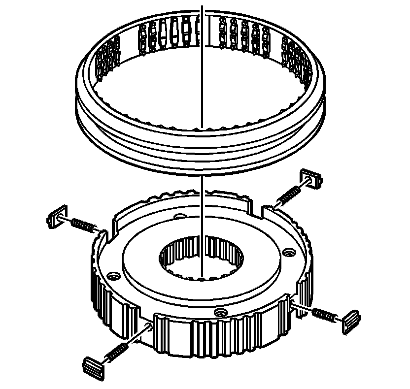 ^ Only disassemble the synchronizer sleeve from the synchronizer hub if there is a suspected gear shift concern.