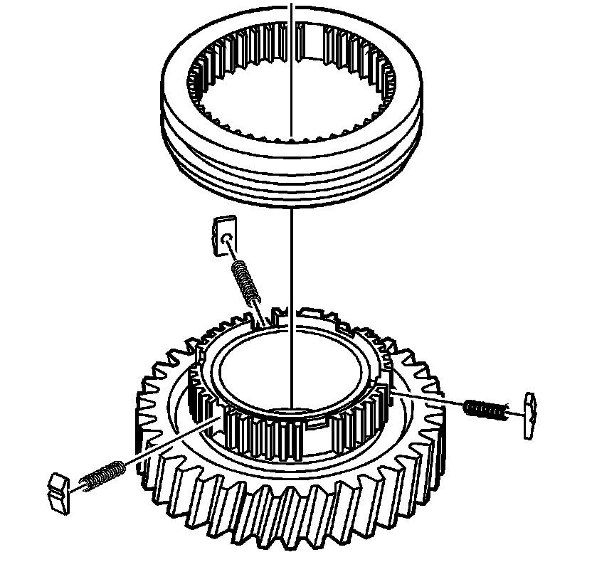 ^ Only disassemble the synchronizer sleeve from the synchronizer hub if there is a suspected gear shift concern.