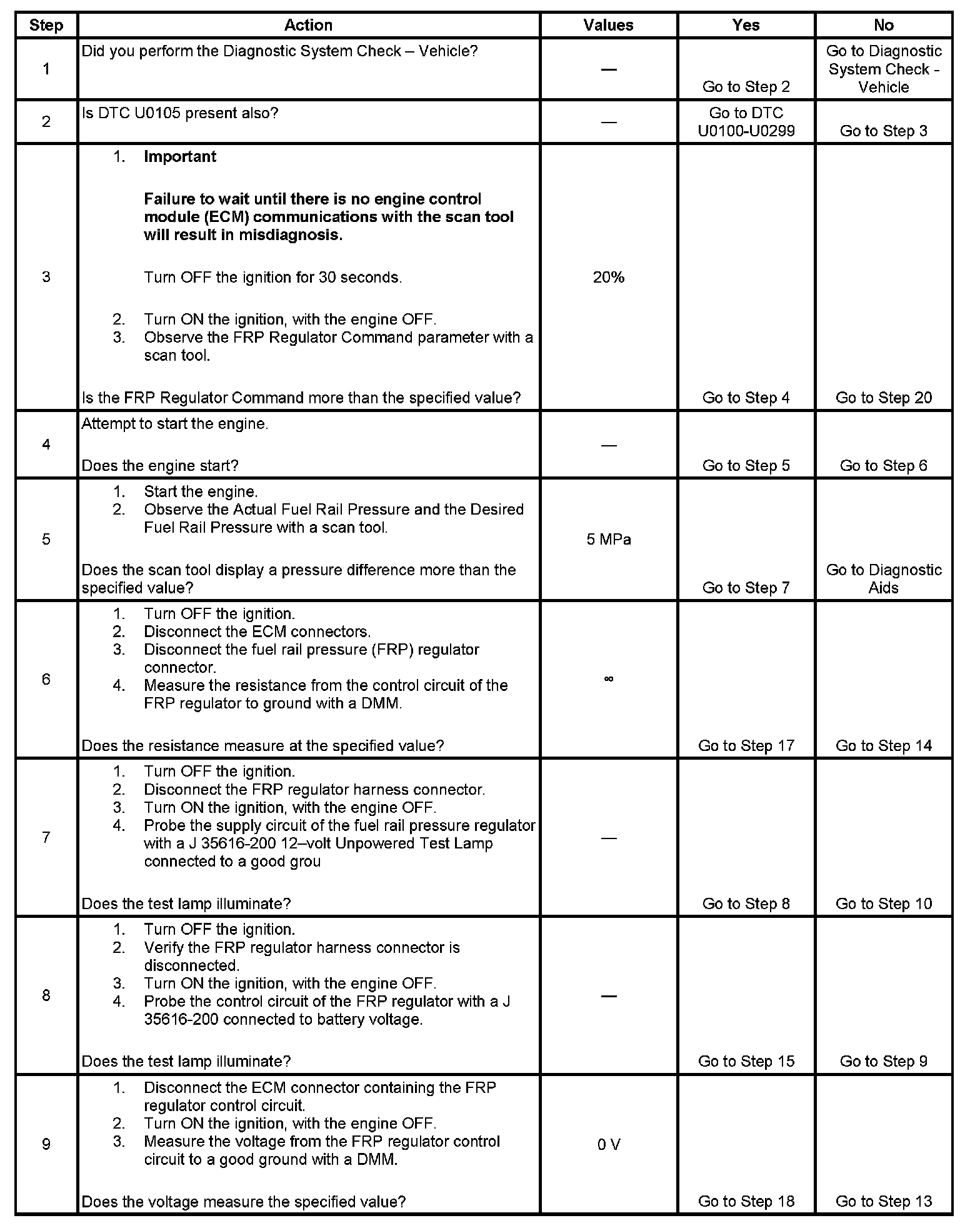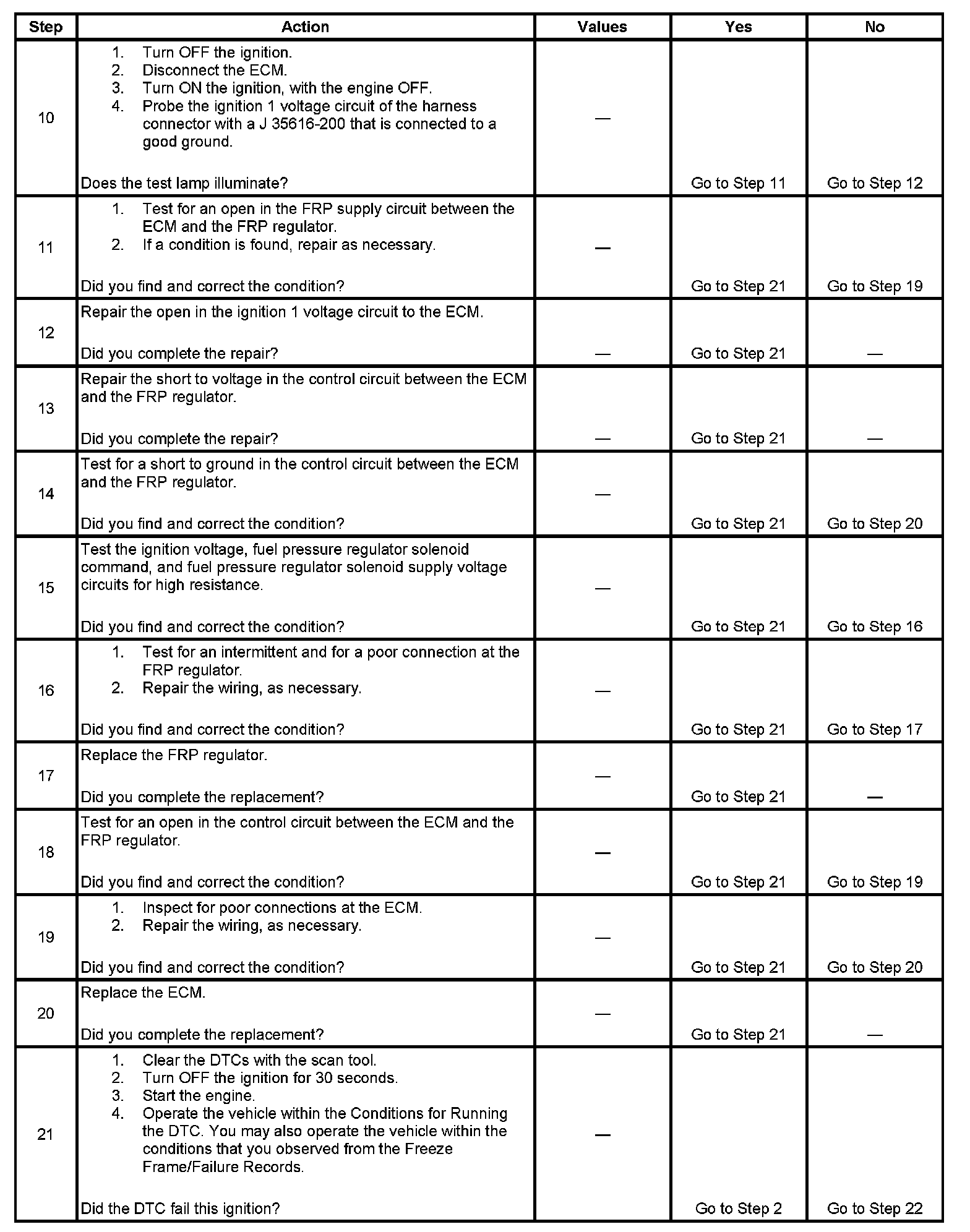 8. This step tests for an open control circuit between the ECM and the FRP regulator.