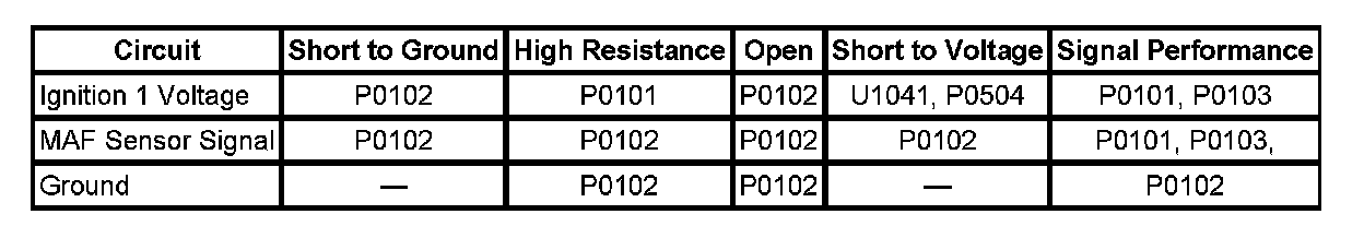 DTC P0103 Mass Air Flow (MAF) Sensor Circuit High Voltage