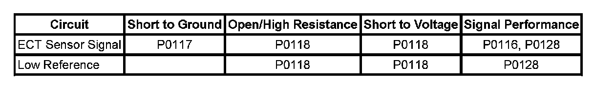 - If the ECT sensor tests normal and the DTC continues to set, replace the ECM.