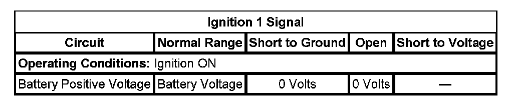 - If the ignition 1 signal parameter is not battery voltage, test the battery positive voltage circuit to the glow plug control module for an open, short to ground or for a faulty glow plug control module.