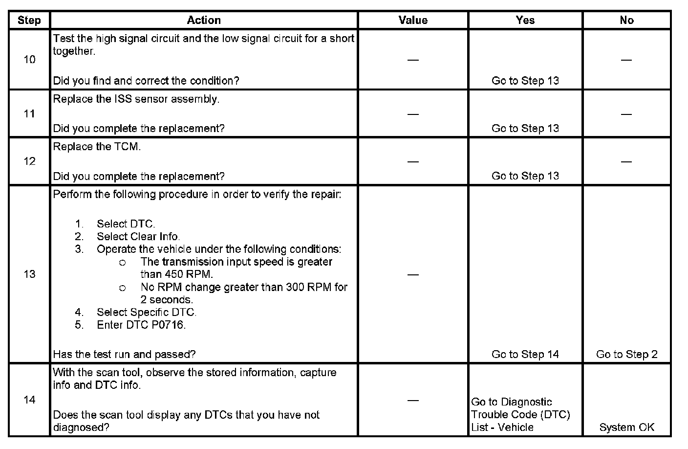 ^ The TCM stores the DTC P0716 in TCM history during the second consecutive trip, California, or the first trip, Federal, in which the Conditions for Setting the DTC are met.