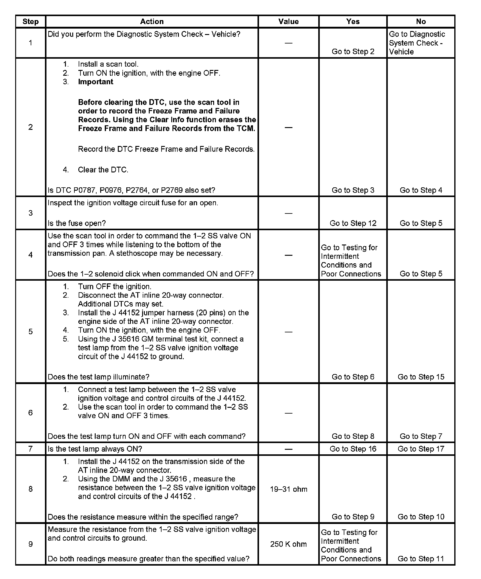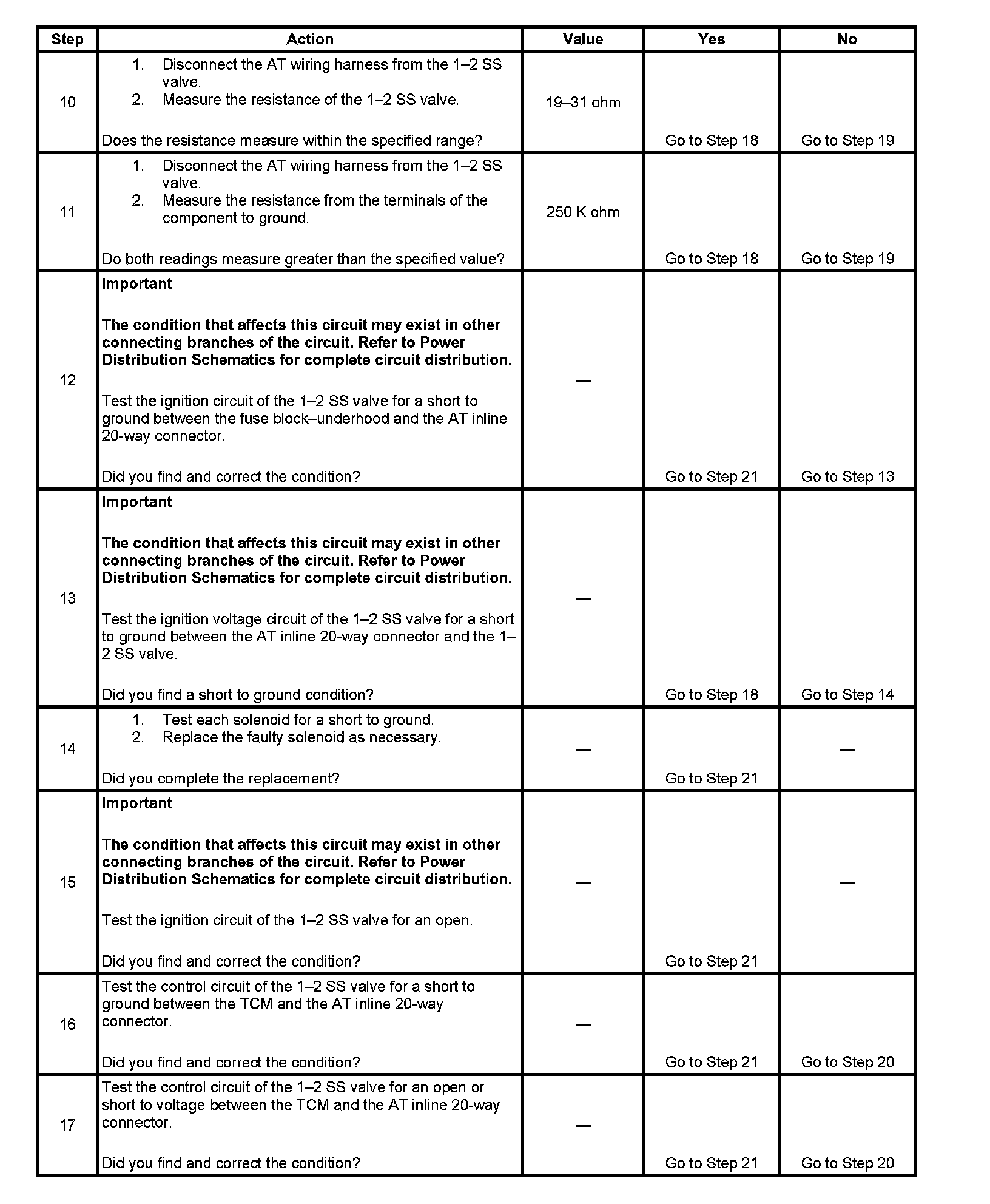 ^ The TCM detects a short to ground in the 1-2 SS valve circuit when the 1-2 SS is commanded ON.