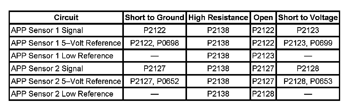 Accelerator Pedal Position (APP) Sensor 1 Circuit High Voltage
