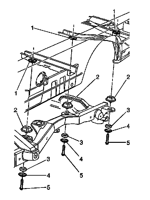 5. Loosen all the body mount bolts (5). Do not remove the bolts.