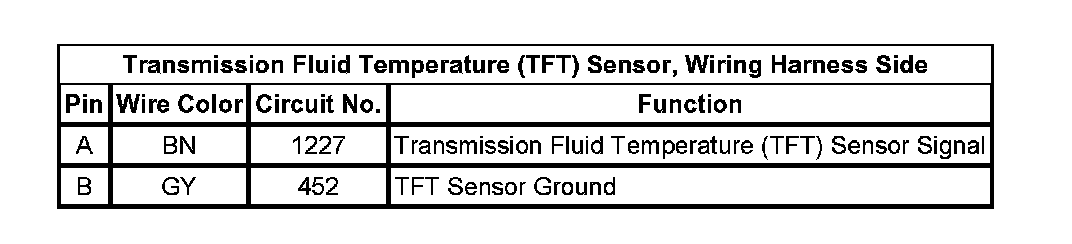 Transmission Fluid Temperature (TFT) Sensor, Wiring Harness Side: