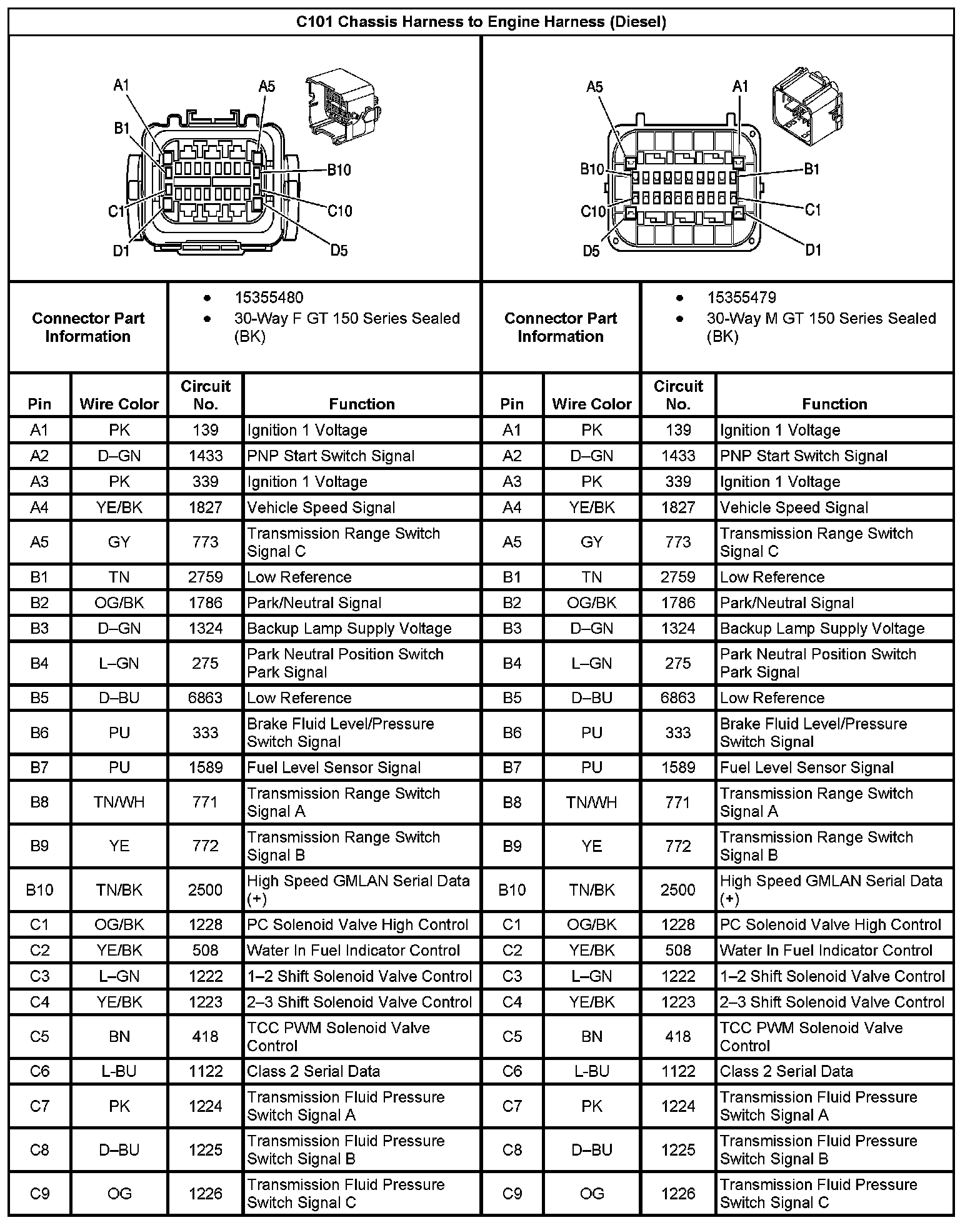 C101 Chassis Harness to Engine Harness (With RPO Code JL4) (Part 1):