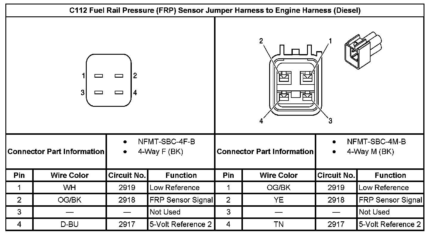 C112 Fuel Rail Pressure (FRP) Sensor Jumper Harness to Engine Harness: