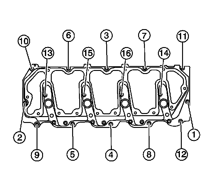 4. Tighten the lower valve rocker arm cover bolts in the sequence shown.