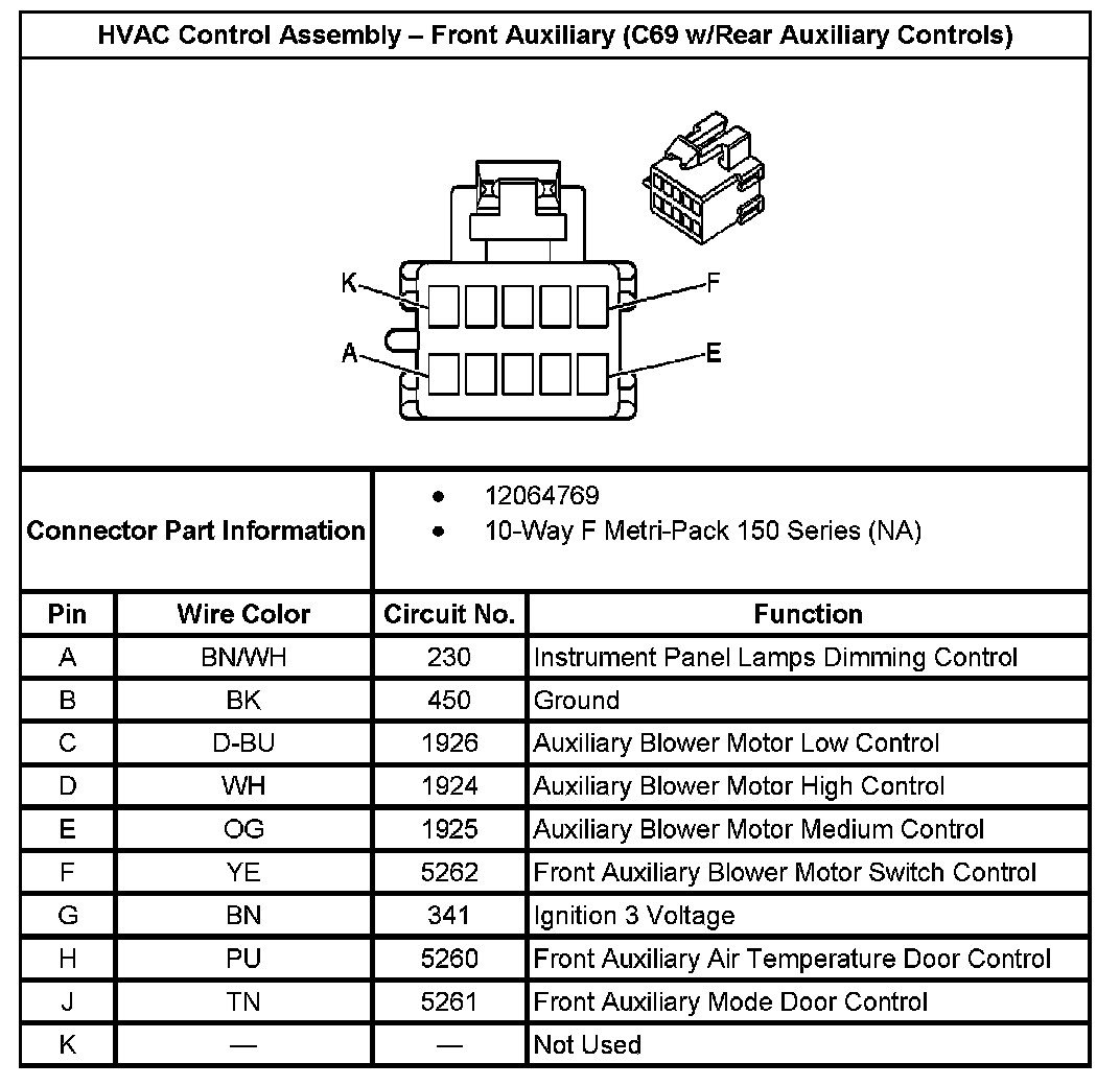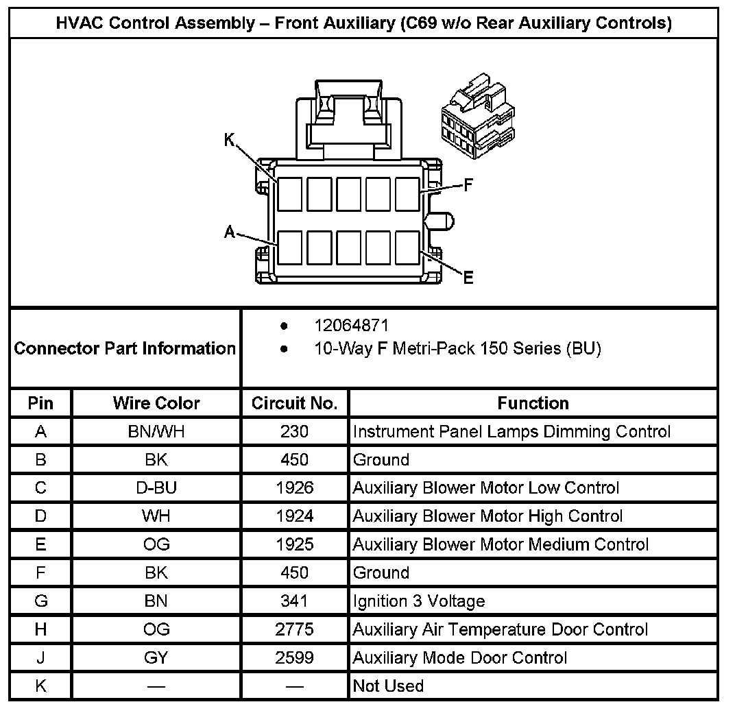 HVAC Control Assembly - Front Auxiliary (With RPO Code C69 W/Rear Auxiliary Controls):