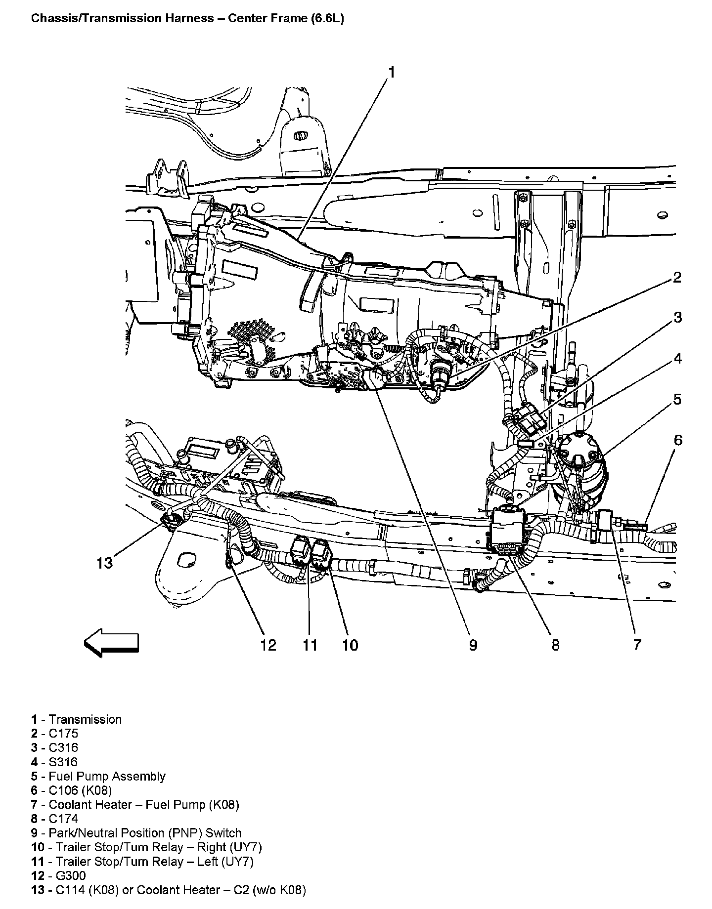 Chassis/Transmission Harness - Center Frame:
