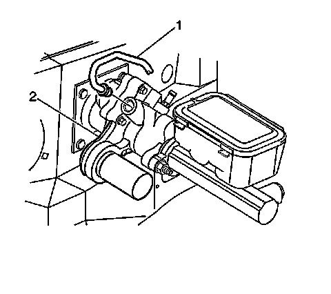 7. Remove the power brake booster inlet hose (1) from the power brake booster (2).