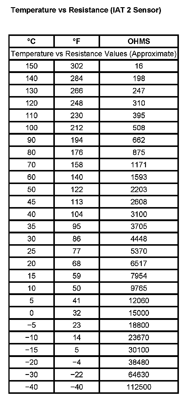 Temperature vs Resistance (IAT 2 Sensor):