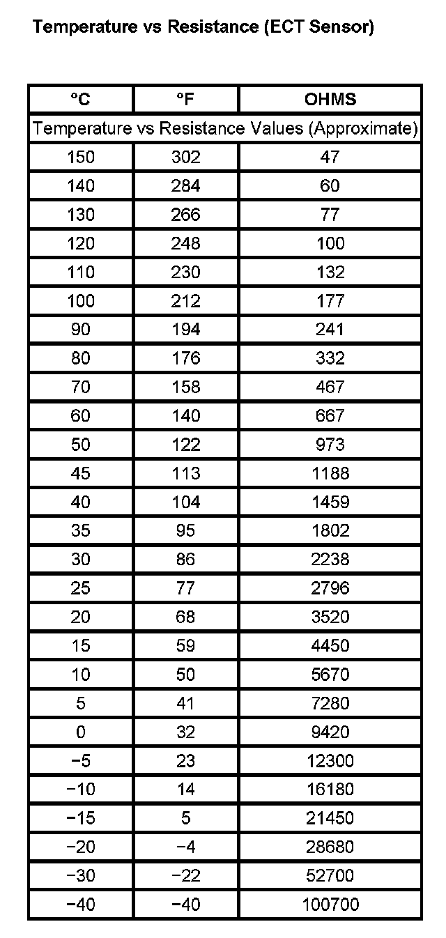 Temperature vs Resistance (ECT Sensor):