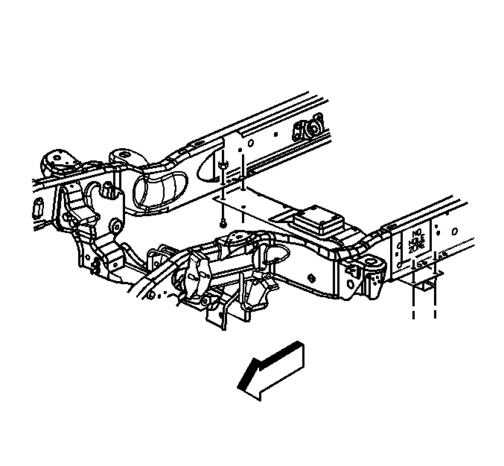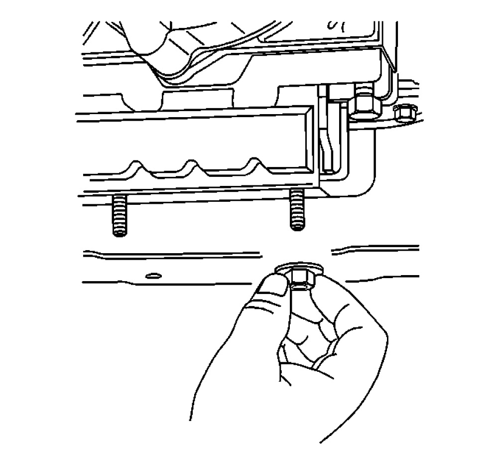 5. Remove the transmission support crossmember bolts.