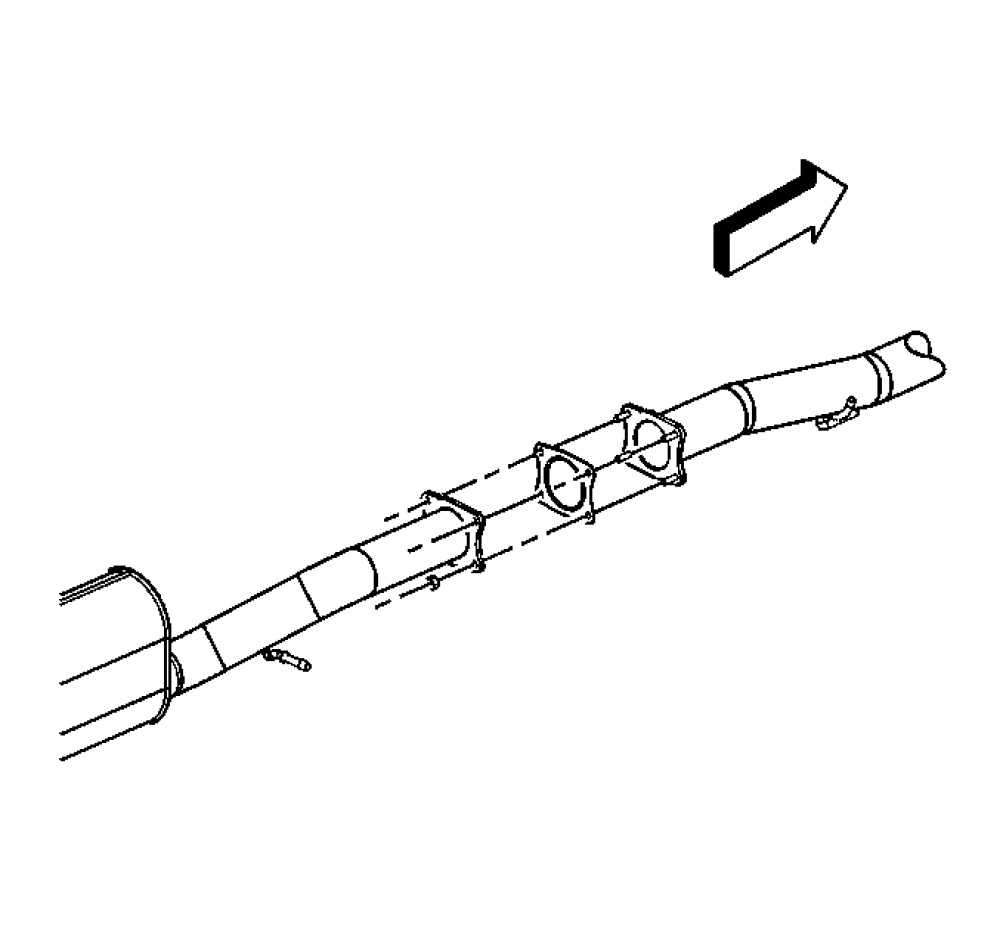 10. Slide the catalytic converter hanger out of the exhaust pipe hanger bracket and remove the catalytic converter.