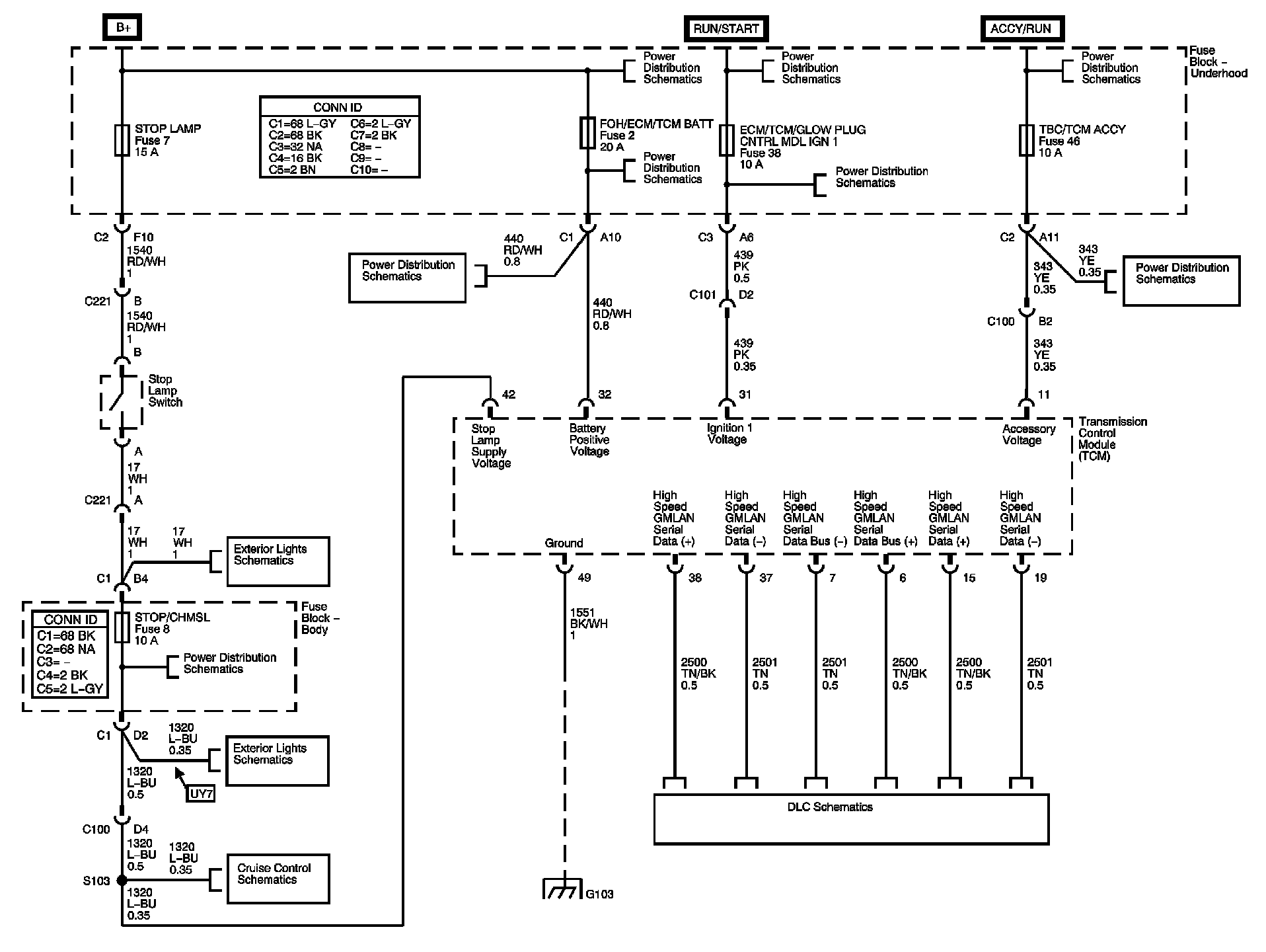 Locations: The locations for the Connectors, Grounds, Splices, and Grommets shown within these diagrams can be found via their numbers at Vehicle Locations. Locations
