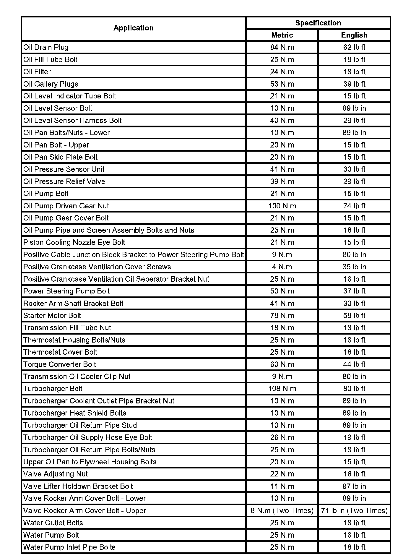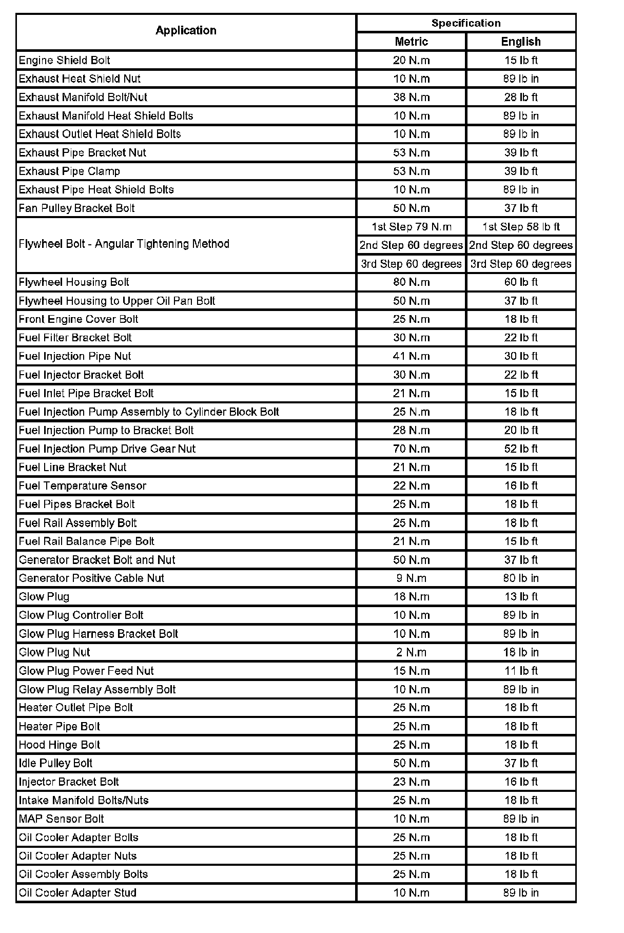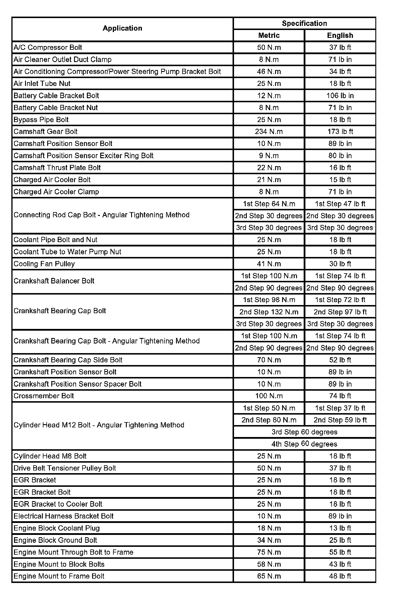 Fastener Tightening Specifications: