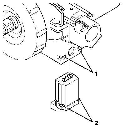 4. Insert the ignition switch into the lock cylinder housing. The tabs (2) on the ignition switch MUST be seated inside the lock cylinder housing (1) for proper installation.