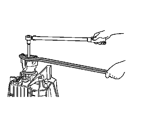 6. For RWD transmission, using the J 8614-01, loosen the propeller shaft yoke nut.