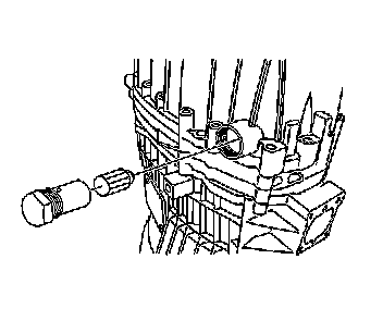 24. Using the J 36825 (1) and the J 23907 (2), remove the 4 shift shaft detent plugs.