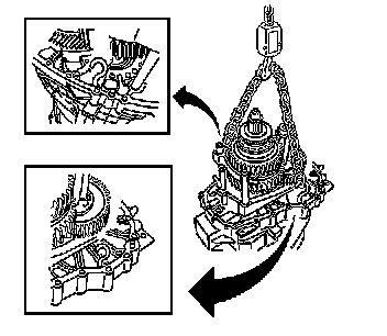 16. Install the S-hooks in the webbing of the intermediate case to the locations shown. Attach a suitable chain to the S-hooks.
