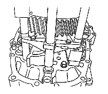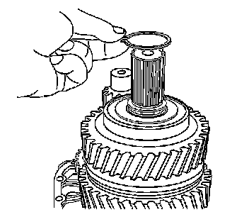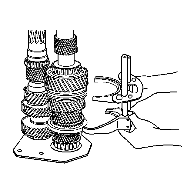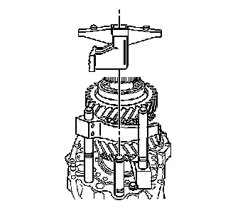 You will be using the intermediate case to pull off the 6th gear synchronizer hub and the 6th gear bushing. Ensure the J 44730 is properly located on the intermediate case.