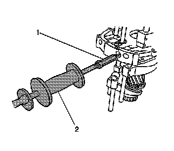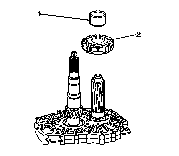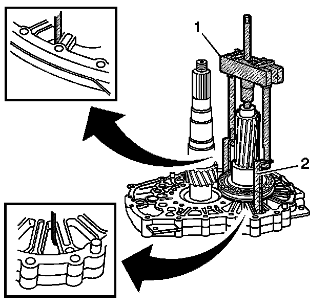Install the J 44730 (2) on the intermediate case as shown. The J 44730 needs to be aligned in order for the J 44707 to be centered on the mainshaft.
