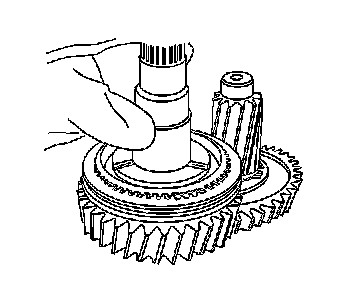 3. Position the countershaft on the J 44725. Roll the countershaft into place to merger the countershaft and mainshaft gears.