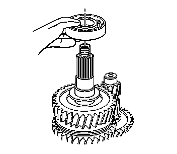 Wearing protective gloves, install the preheated mainshaft rear bearing on the mainshaft. Rotate the bearing while installing to ensure the bearing is fully and squarely seated.