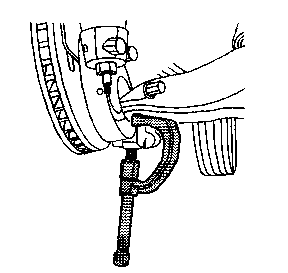 5. Disconnect the lower ball joint from the steering knuckle using J43631 and J45851.
