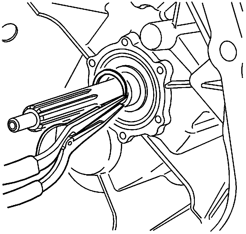 32. If 4WD vehicle, remove the main shaft rear bearing retaining ring.