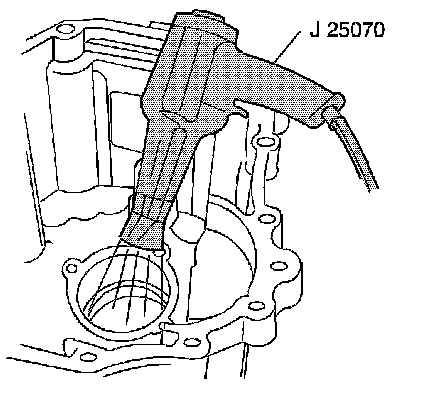 9. Using the J 25070, heat the clutch housing front countershaft bearing bore for ten minutes.