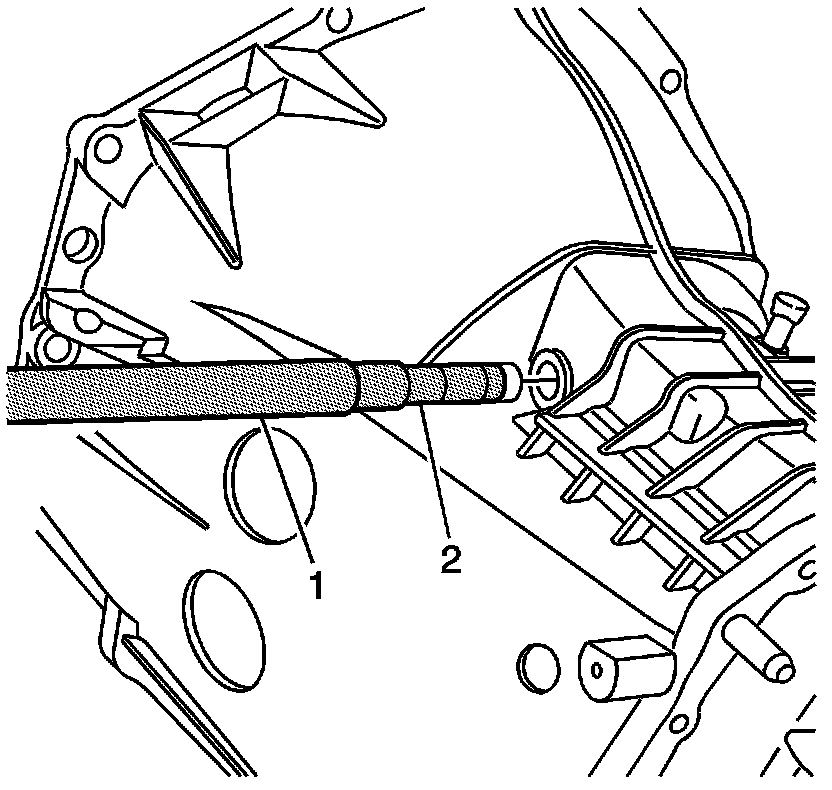 Using the J 36800 (2) and J 23907 (1), remove the shift shaft front housing bushing.