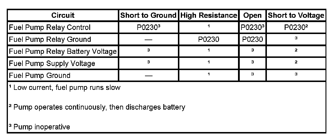 - If the fuel pump does not operate, test for an open or high resistance in the supply voltage circuit, or ground circuit of the fuel pump.