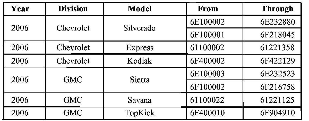 Involved are certain 2006 Chevrolet Silverado, Express, Kodiak; and 2006 GMC Sierra, Savana, Topkick model trucks equipped with a 6.6L V8 (RPO LLY - VIN 2 or RPO LBZ - VIN D) Duramax Diesel engine and built within the VIN breakpoints shown.