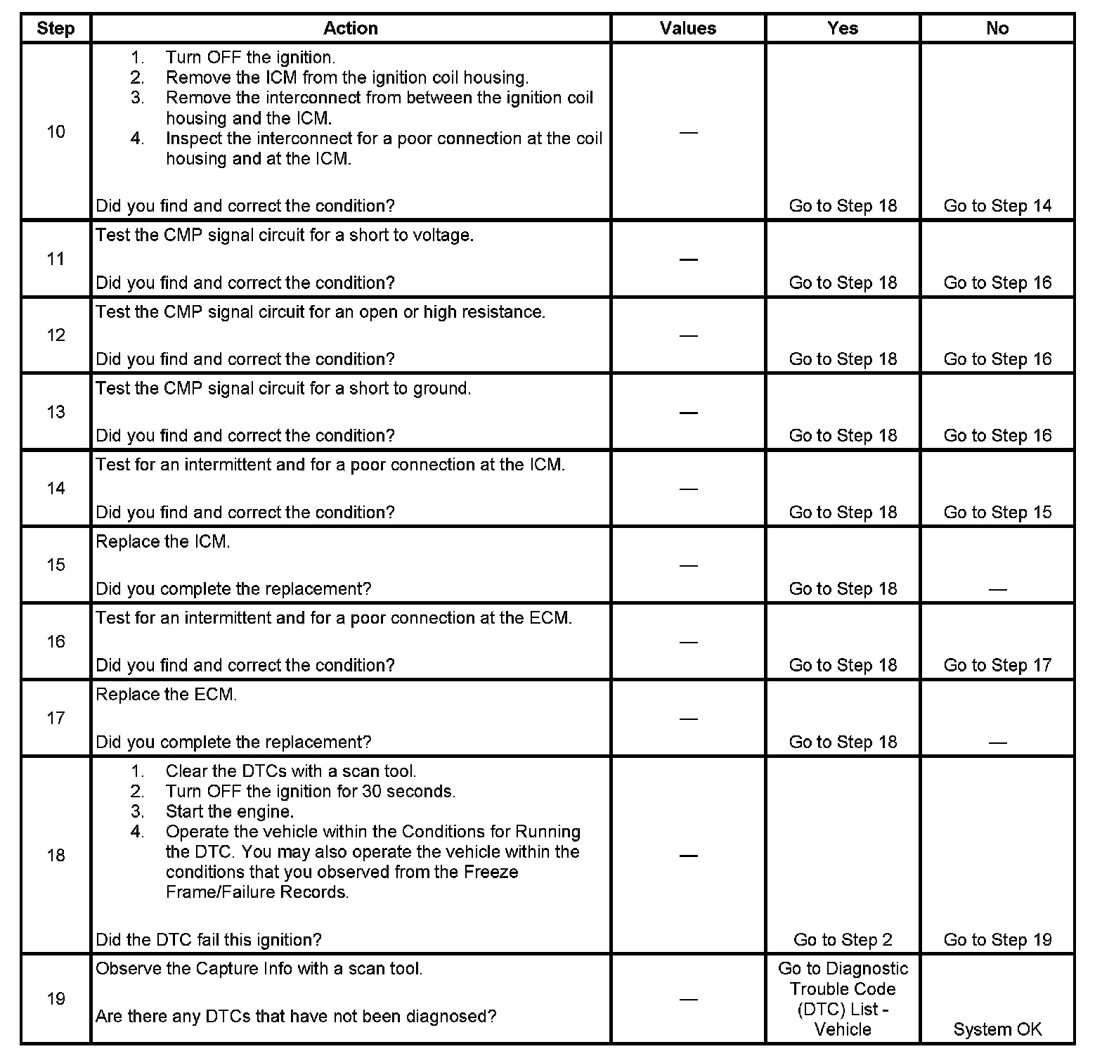 - An intermittent crank signal will result in an interrupted cam signal and may set this DTC.