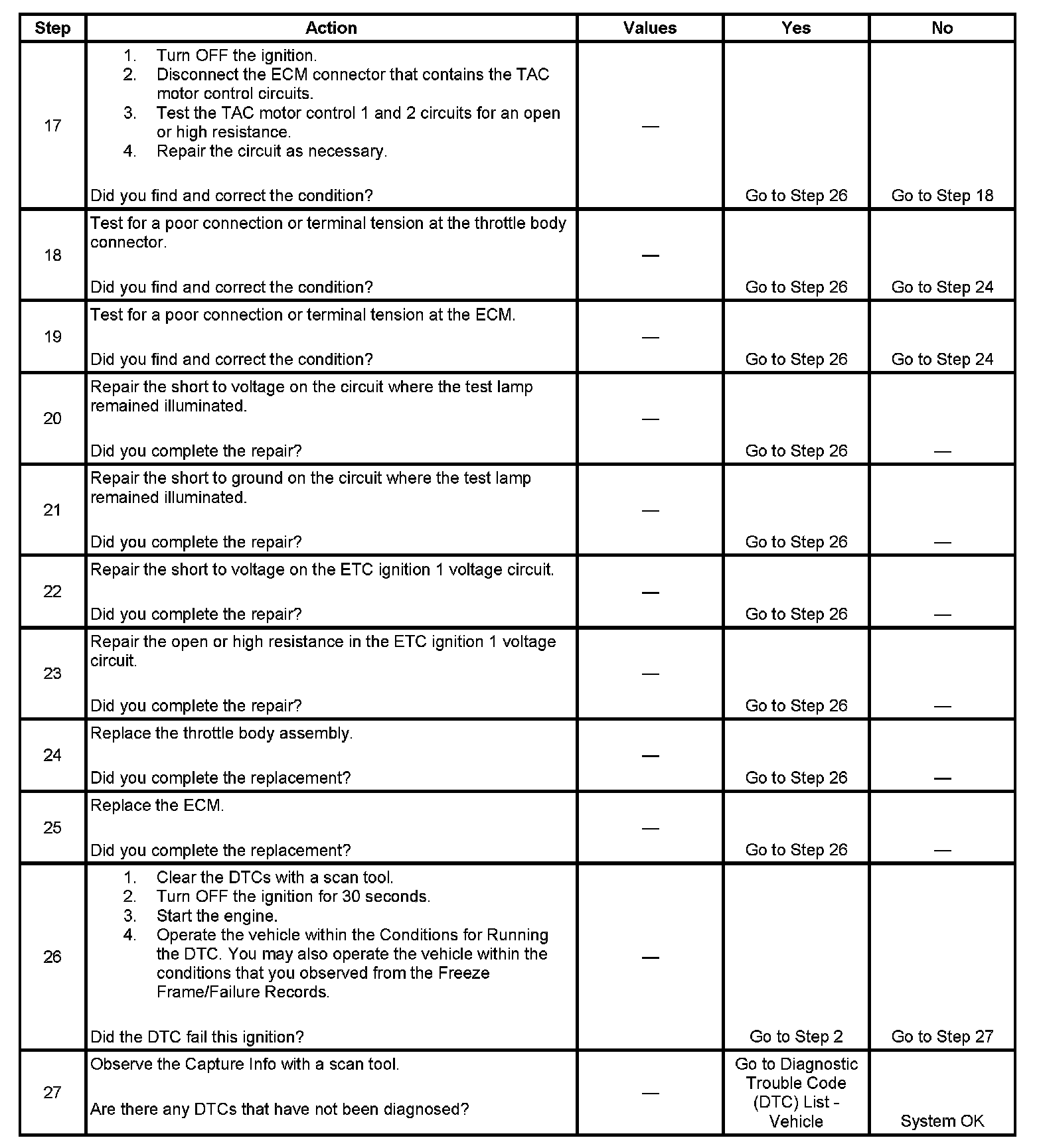 - Replace the throttle body if any of these conditions are found.