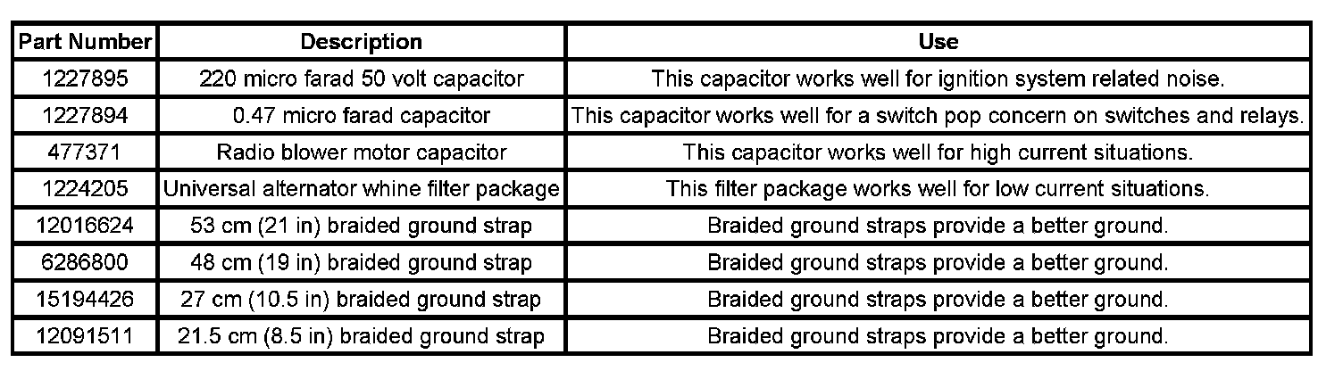 7. If the installation of this filter causes a delay when turning the radio ON or OFF, or other noticeable performance problems, remove the filter and install a .47 micro farad capacitor (P/N 1227894) to chassis ground.