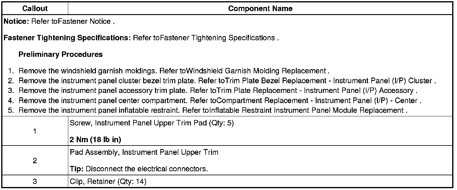 Trim Pad Replacement - Instrument Panel (I/P) Upper