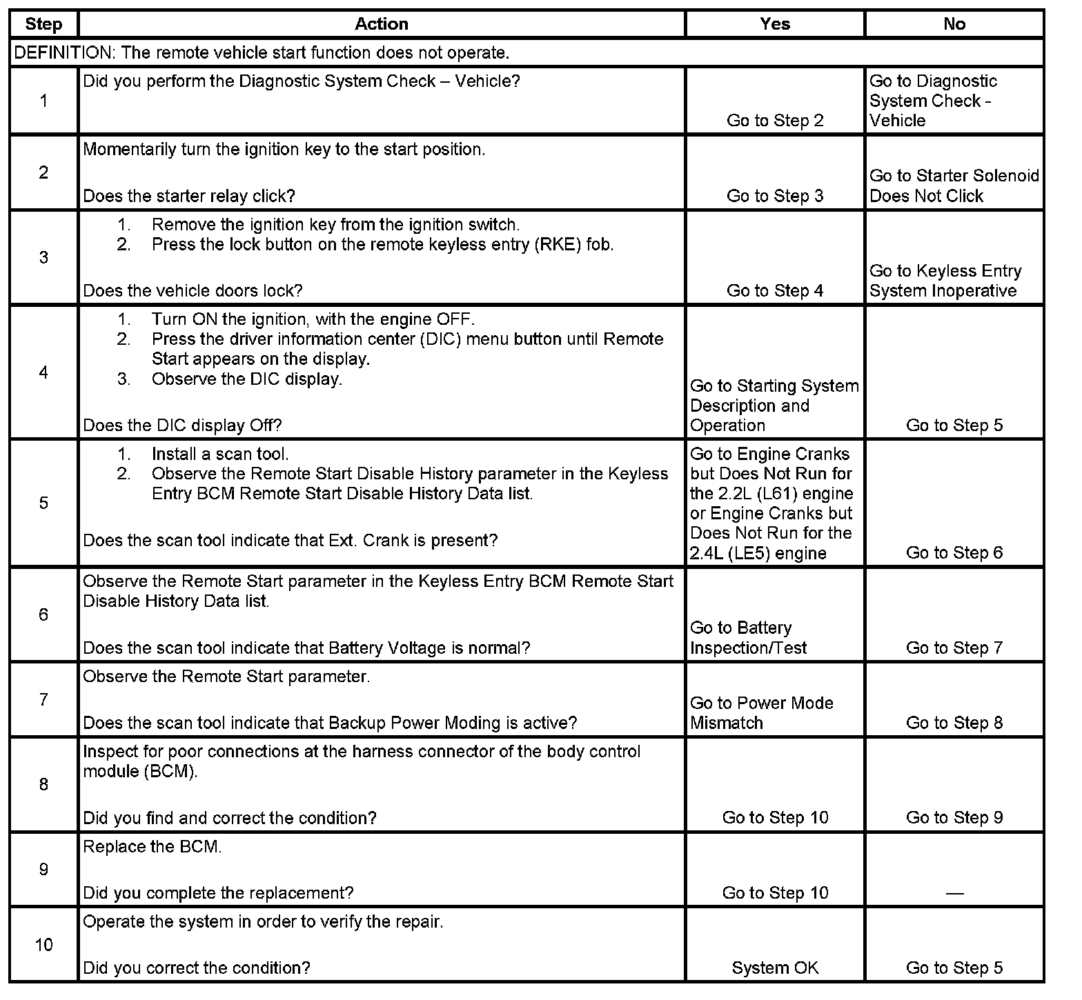 Remote Vehicle Start Inoperative