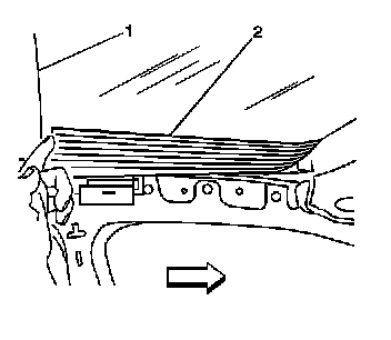 1. Cycle the sunroof window to the vent position in order to ease in the removal of the forward adjusting screws (2).