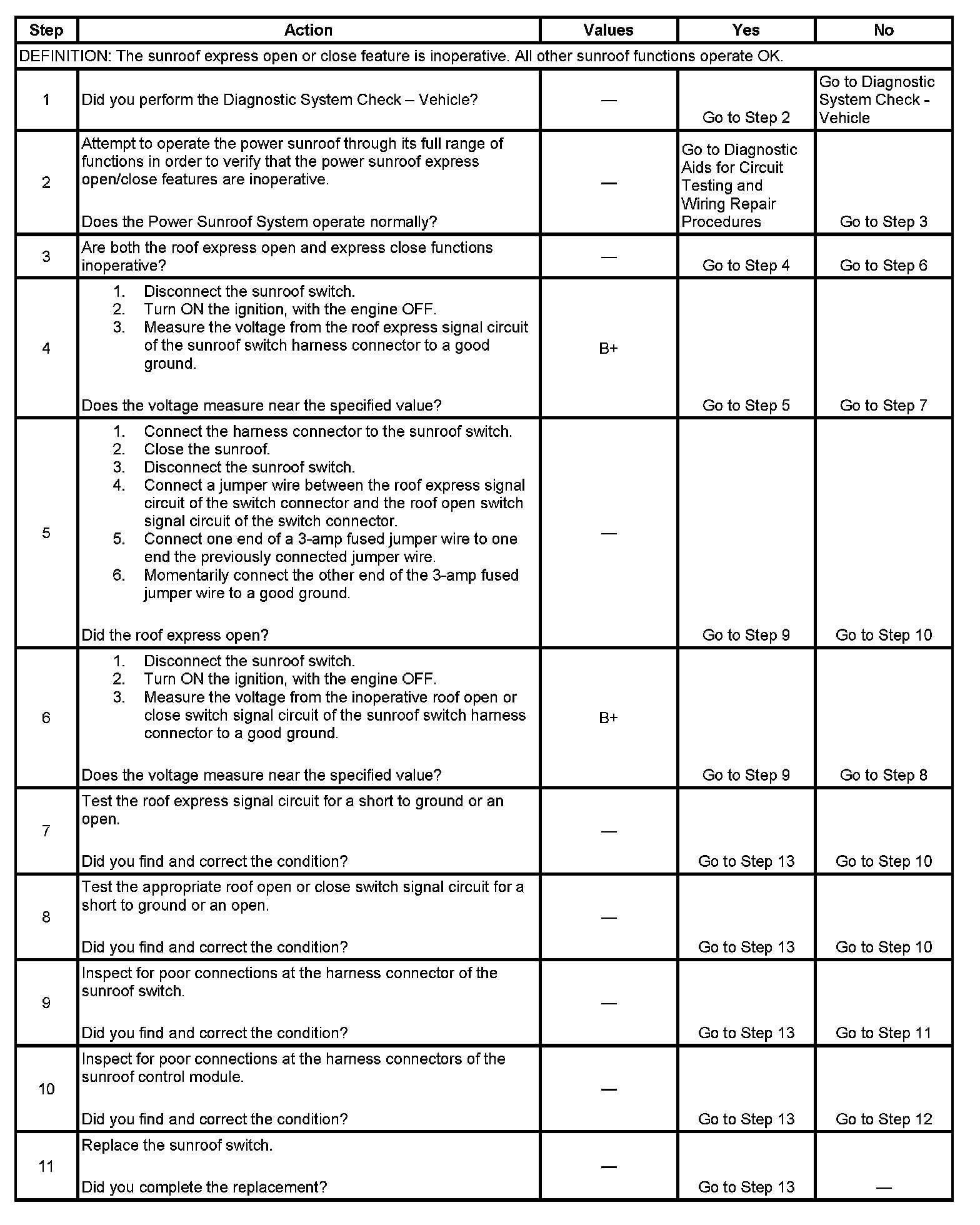 If the sunroof switch express signal circuit is found to be short to voltage, the sunroof switch will most likely be open.