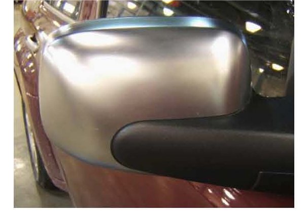 Install flocking tape and adhesive back shim stock to the outside rearview mirror housing. The pattern is noted in the steps below: