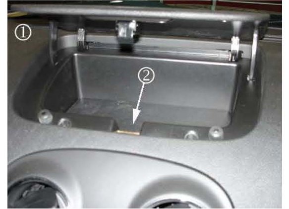 1. Locate and open the instrument panel storage bin (1).