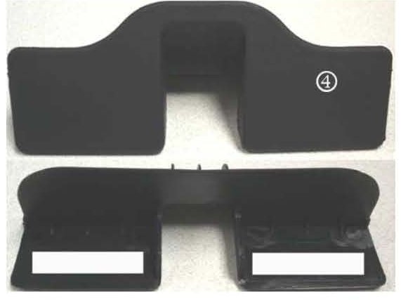 5. Peel the protective film from the two adhesive strips on the backside of the reinforcement latch plate bracket (4).