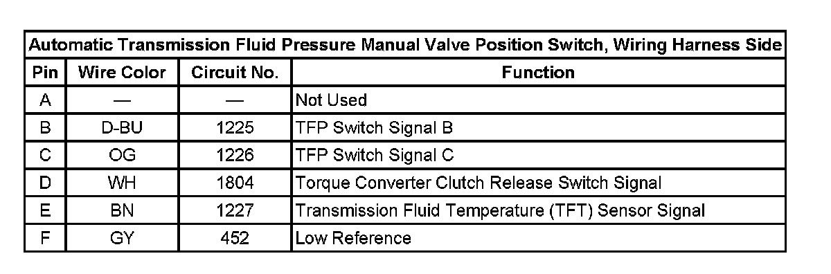 Automatic Transmission Fluid Pressure Manual Valve Position Switch, Wiring Harness Side: